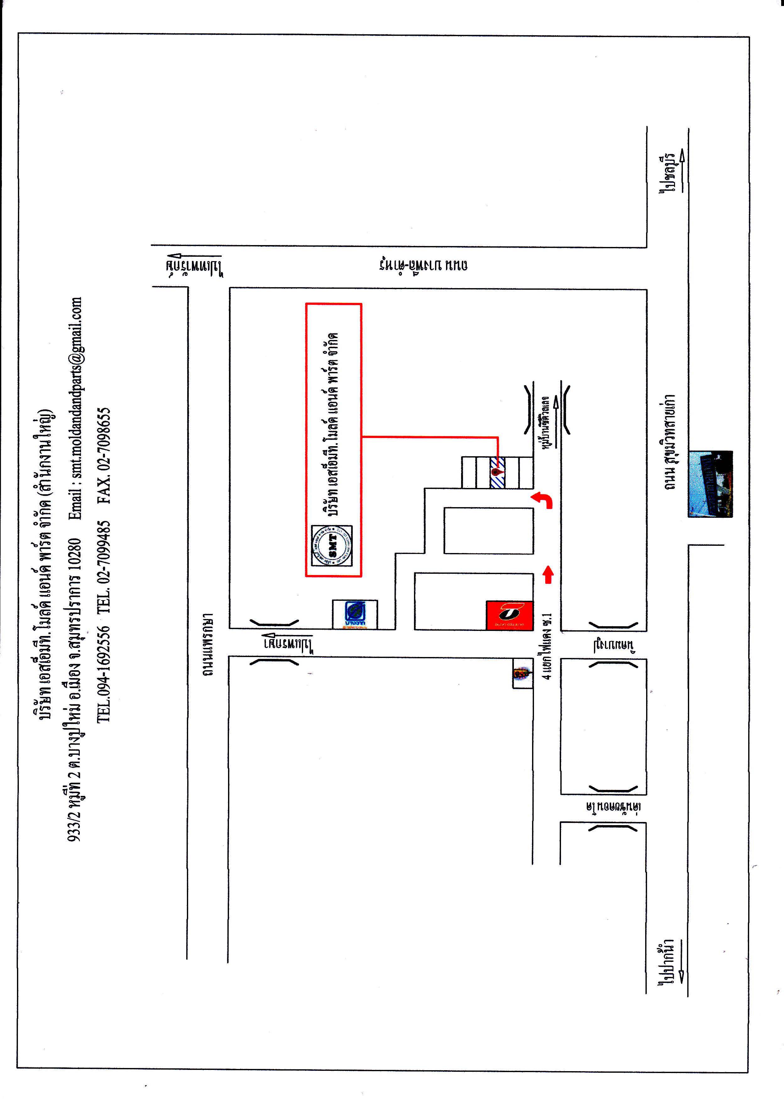 บริษัท เอสเอ็มที.โมลด์ แอนด์ พาร์ค จำกัด SMT.MOULD AND PARTS CO.,LTD. สำนักงานใหญ่ เลขประจำตัวผู้เสียภาษีอากร 0115557004156 993/2 หมู่ 2 ต.บางปูใหม่ อ.เมืองสมุทรปราการ จ.สมุทรปราการ 10280 933/2 Moo 2 T.Bangpoomai A.Muangsamutprakarn, Samutprakarn 10280 Thailand Tel./โทรศัพท์ : +(66)2-7099485,081-6229663 Fax/แฟกซ์ : +(66)2-7098655 ติดต่อสอบถาม : คุณชัยวัฒน์ ศรีมูลตรี สายด่วน 094-169 2556 ,081-622 9663 Contact : Mr.Chaiwat Srimooltree (Managing Director) Hotline : 094-169 2556 ,081-622 9663 E-mail : smt.moldandparts@gmail.com www.smt-moldandparts.com ESTABLISHED : 3 MARCH 2014 CAPITAL : 5,000,000 THB EMPLOYEES : 15 PERSONS BUILDING : 550 SQ.M. |
